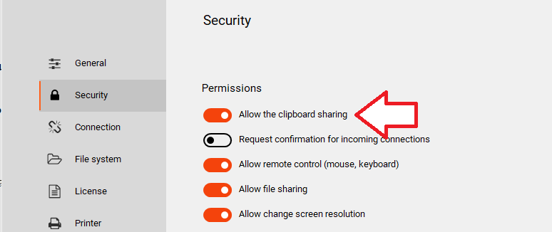 Dal remoto al locale (testo): possibile solo se sul PC remoto è abilitata l’opzione “Consenti la condivisione degli appunti” nelle impostazioni di sicurezza.